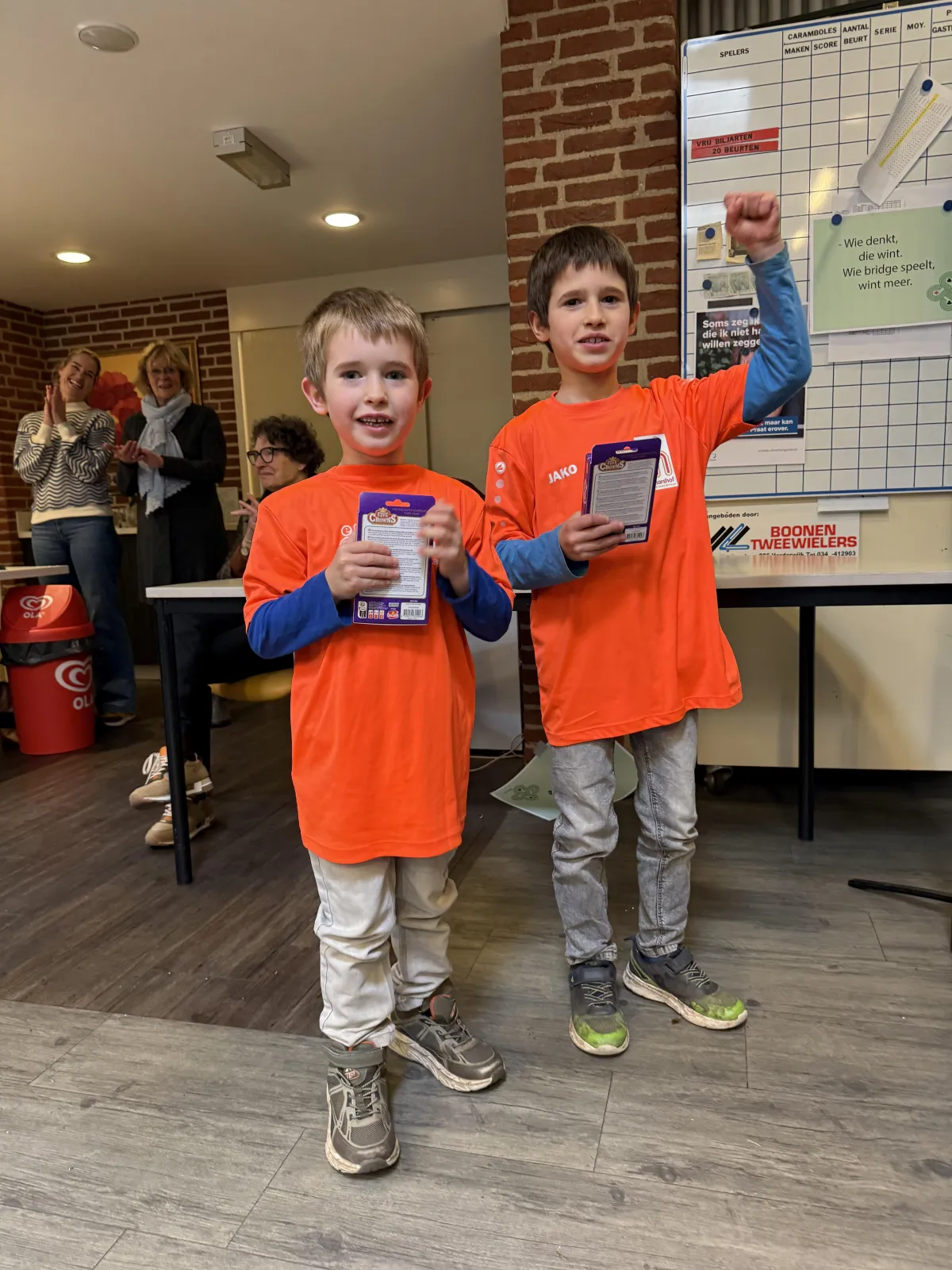 Tussen vallende bladeren, Sinterklaasvieringen, kerstvoorbereidingen en (jawel) Cito-trainingen door bleef het toernooi hét gesprek op het schoolplein. Kinderen bespraken biedafspraken alsof het voetbalopstellingen waren. Er werd geoefend met biedingen, signaalsystemen en zelfs een vleugje psychologie aan tafel. En dat ging fanatiek: tijdens een oefenmoment klonk het strijdlustig in koor:
